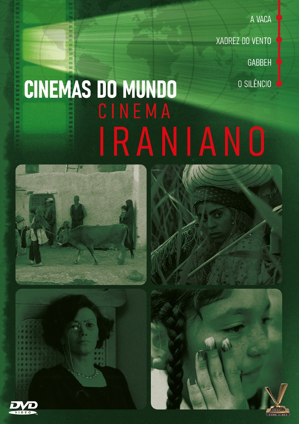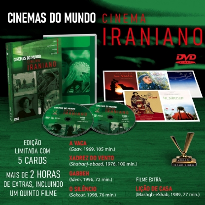 A Versátil apresenta CINEMAS DO MUNDO: CINEMA IRANIANO, caixa em luva reforçada com 2 DVDs que reúne quatro clássicos iranianos em inéditas versões restauradas: “A Vaca” (1969), de Dariush Mehrjui, “Xadrez do Vento” (1976), de Mohammad Reza Aslani, e “Gabbeh” (1996) e “O Silêncio” (1998), de Mohsen Makhmalbaf (“Um Instante de Inocência”, “O Caminho para Kandahar”), um dos mais influentes diretores do país. MAIS DE DUAS HORAS DE VÍDEOS EXTRAS, com destaque para um QUINTO FILME: “Lição de Casa” (1989), maravilhoso documentário do mestre Abbas Kiarostami (“Gosto de Cereja”, “Cópia Fiel”, “Onde Fica a Casa do Meu Amigo?”, “Através das Oliveiras”), o maior cineasta iraniano de todos os tempos, no qual Kiarostami entrevista crianças sobre sua vida escolar. Edição Limitada com 5 cards.